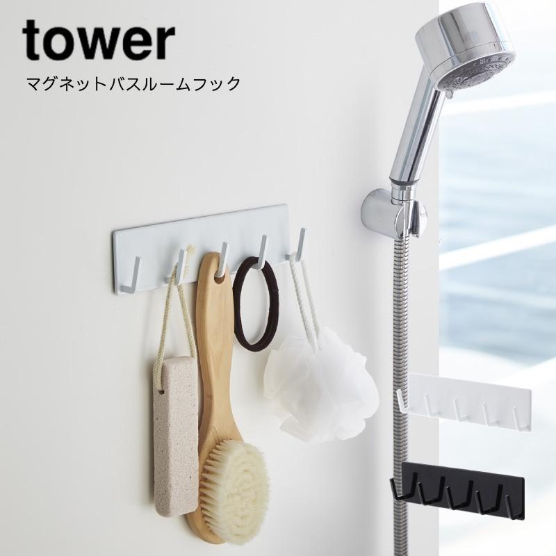 tower タオル掛け上ラック タワー 風呂場 バスルーム 棚 小物置き 整理整頓 収納 フック付き タワーシリーズ 山崎実業 アシストワン