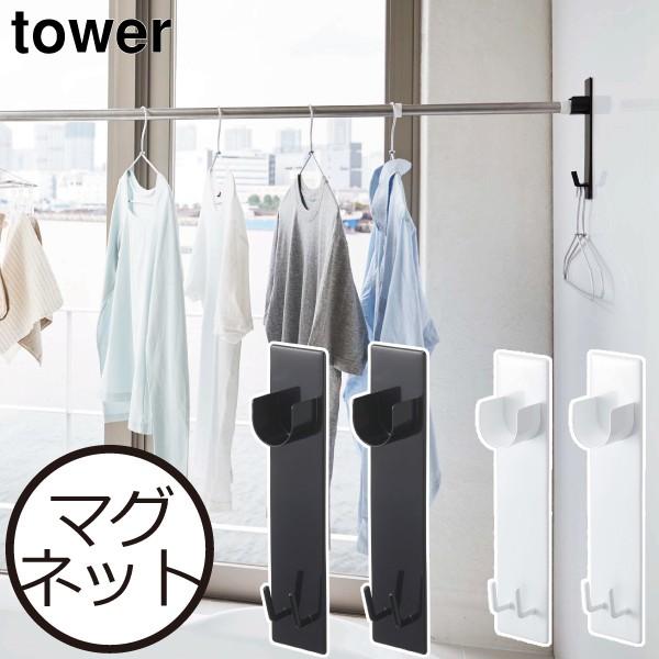 バスルーム 物干し竿ホルダー 浴室乾燥 浴室壁面 マグネット 簡単取り付け フック付 スチール壁面 ホワイト ブラック 便利 洗濯物干し 舗 直径3 5cm物干し竿 北欧 おしゃれ ポイント10倍 送料無料 バスルーム物干し竿ホルダー2個組 タワー 新生活 洗濯物 タワーシリーズ