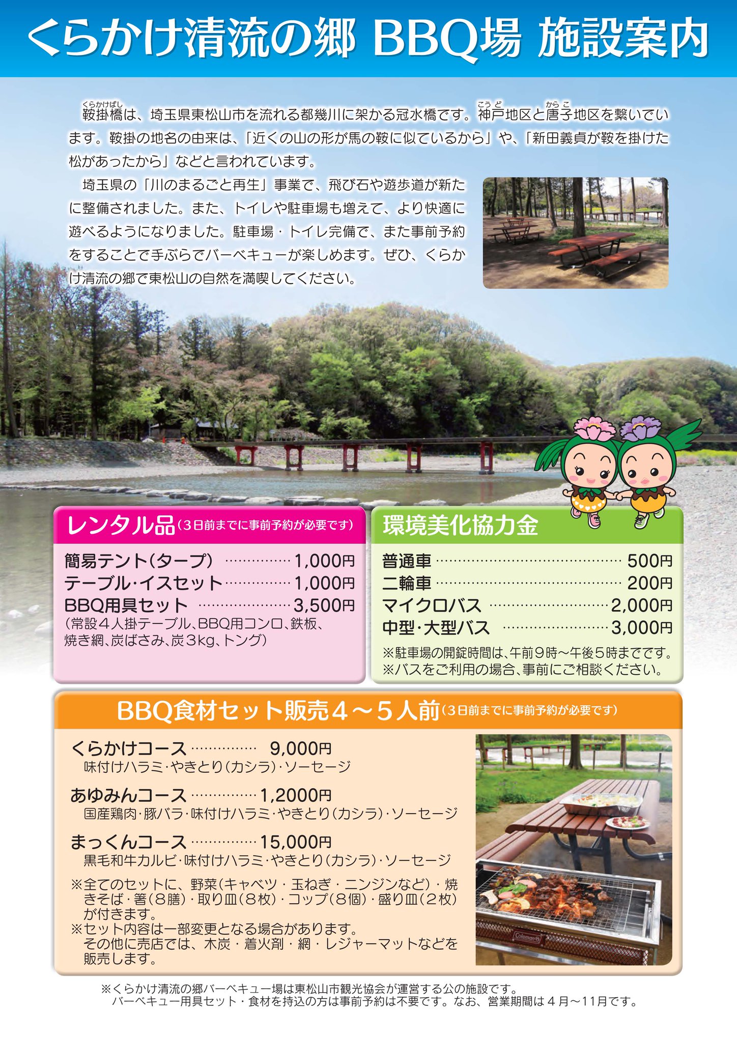 東松山市公式 ar twitter 5月1日オープン くらかけ清流の郷 4月30日 くらかけ清流の郷バーベキュー場開所式を行いました 3日前までの事前予約でbbq用具のレンタルや食材の手配ができ 手ぶらでbbqを楽しめます ぜひお越しください 東松山