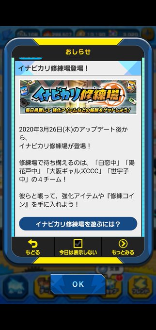 イナビカリ修練場が期間限定実装 イナズマイレブンsd コシローの超次元なブログ