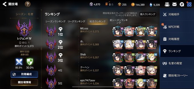 エピックセブン 評価 編成 グローバル版最新pvp防衛ランキングtop50位まで貼っとくぞ gameinn