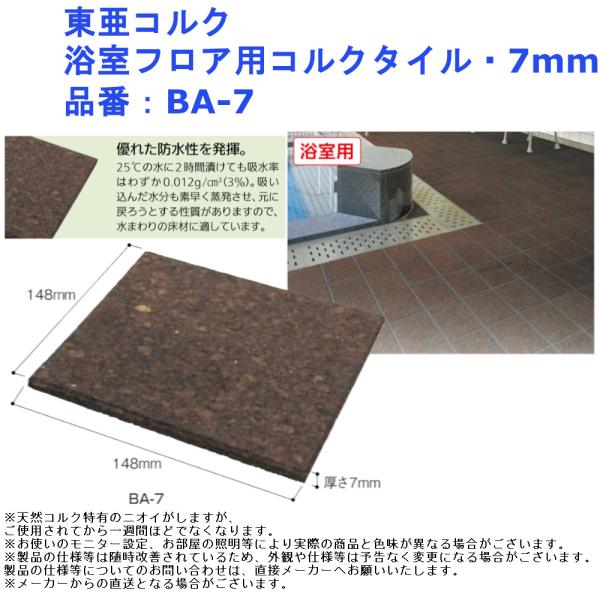 浴室用 コルクタイル バスコ 東亜コルク 無塗装 浴室床用 浴室壁用 脱衣室用 1色 ワコードープロ