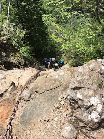 急斜面の鎖場を登る山ガール 両神山八丁尾根登山コース
