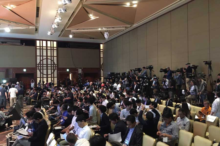 多くのメディア関係者が集まった記者会見場 北京 写真 西日本新聞me