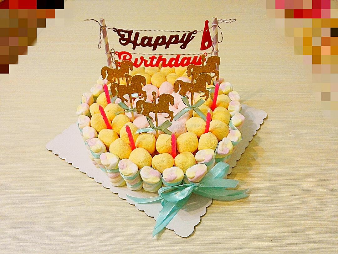 8寸无奶油棉花糖装饰蛋糕 游乐场主题
