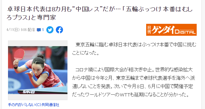 应对新冠肺炎日乒协计划派张本等参加挑战赛 乒乓球 新浪竞技风暴 新浪网