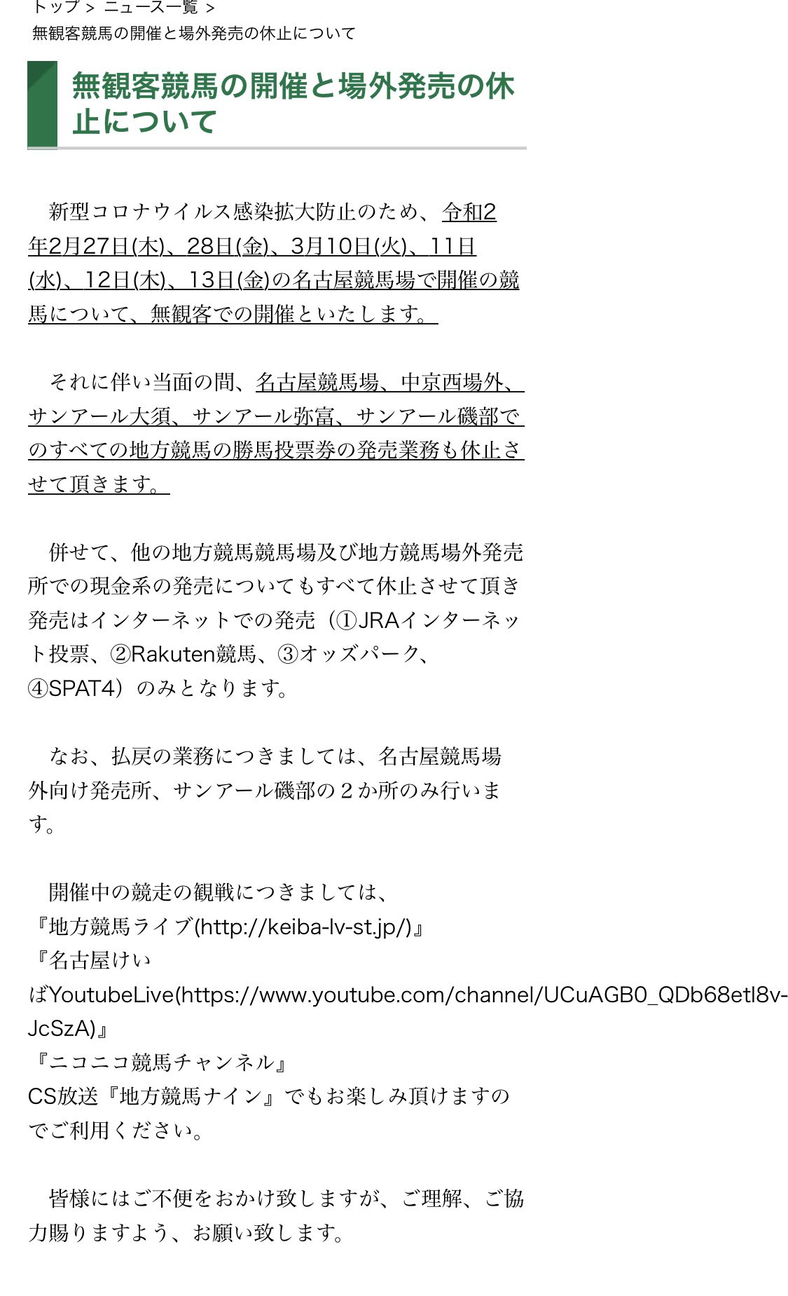 jraが当面のレースを無観客で開催 馬券購入は電話 インターネット限定 毎日新聞
