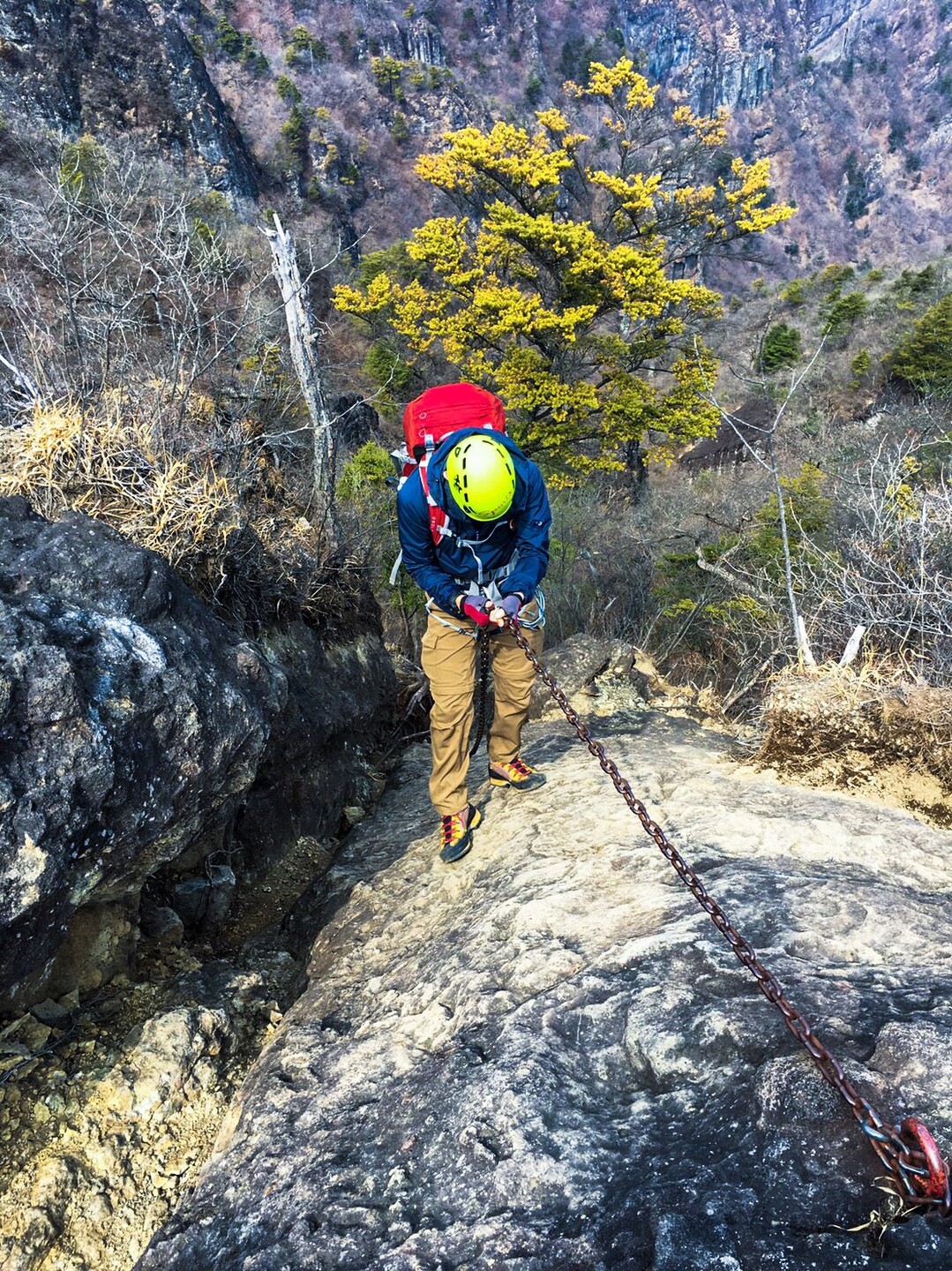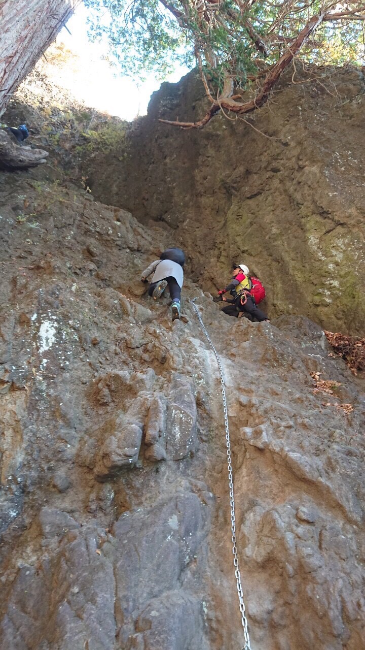 奥の院上の7m外傾斜鎖場 妙義山白雲山ルート