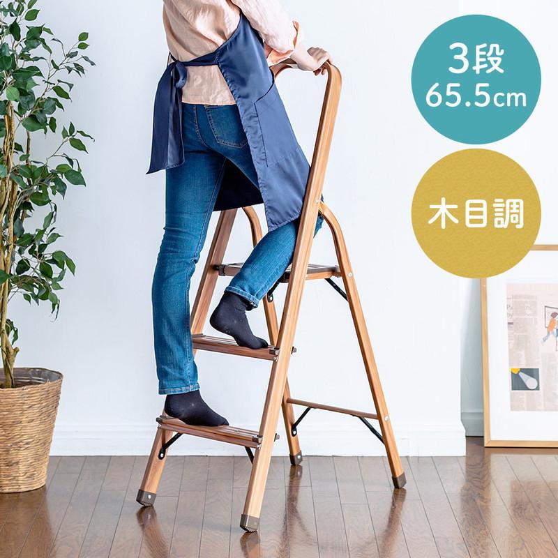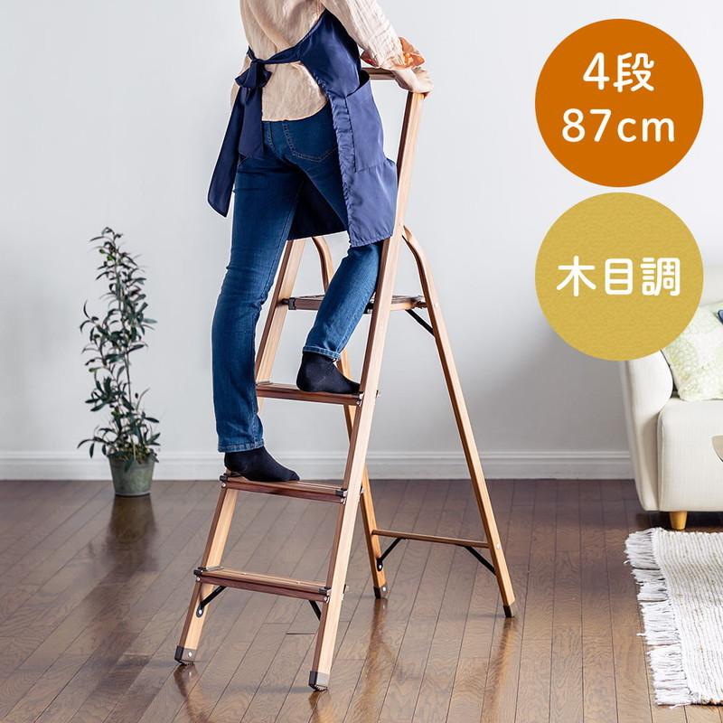 予約商品 脚立 4段 木目調 取っ手付 折りたたみ 軽量 アルミ 家庭用 足場 安全 滑り止め 踏み台 eex kya11