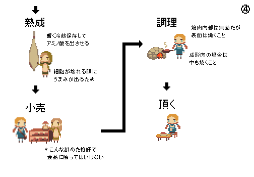 去勢は基本ねじってとる かわいいドット絵で屠殺を描いた 牛肉を食べるまでのフロー が考えさせられる togetter