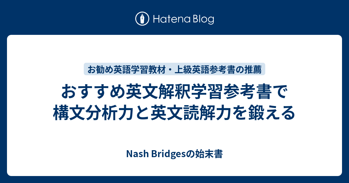 おすすめ英文解釈学習参考書で構文分析力と英文読解力を鍛える nash bridgesの始末書