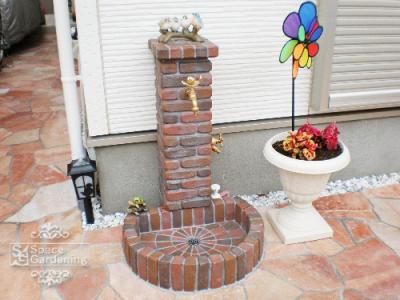 レンガの手洗い場もある美しいアプローチ