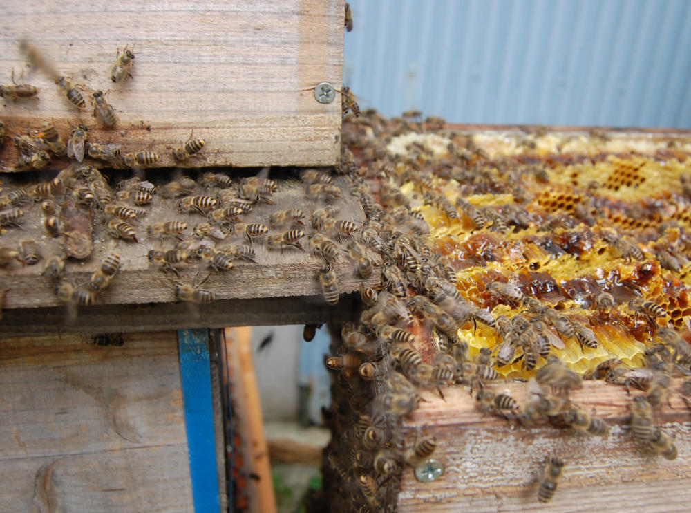 重箱式養蜂箱の採蜜作業 大和ミツバチ 日本ミツバチ 大和ミツバチ研究所