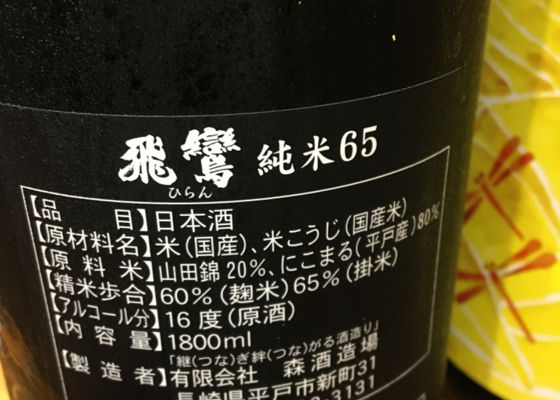 森酒造場 飛鸞 ひらん 純米65 1800ml すべての商品 福岡市中央区春吉にある 福岡県内70蔵のお酒が全て揃う店 友添本店です