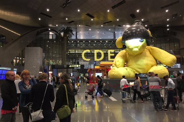2021这是机场标志性的小黄熊 其实人家蛮大的啦 真的很佩服他们的滴灌技术 在沙漠中创造了一个又一个绿洲 多哈机场 评论 去哪儿攻略