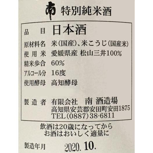 試飲レビュー 高知県 南酒造場 南 特別純米 無濾過生原酒 北海道 土井商店 酒正 株式会社 土井商店