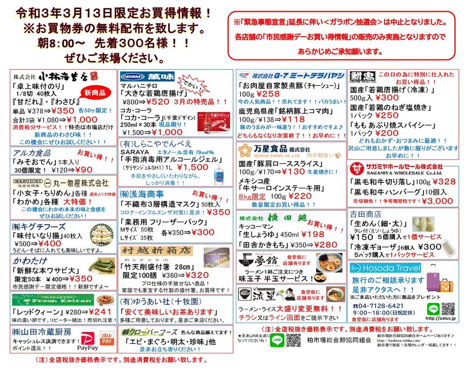 市場開場 休場カレンダー 柏市場総合卸協同組合