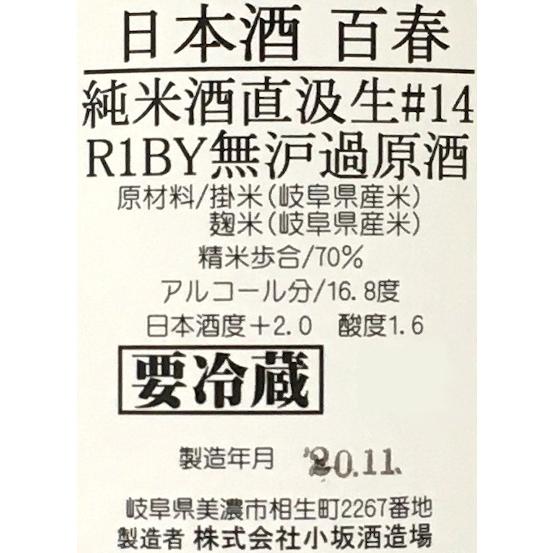 Hyakusyun junmaiginjo oyamanishiki un chacoal filterd 百春 純米吟醸 雄山錦 無濾過原酒.