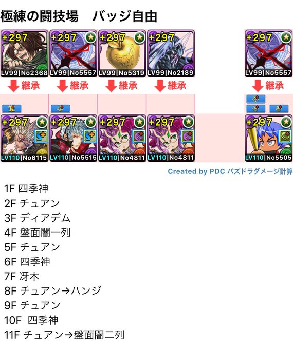 ちゃ twitterissa 極練の闘技場 冴木で片カーディナル作ってみました 育成枠無しのランク上げ用周回編成です