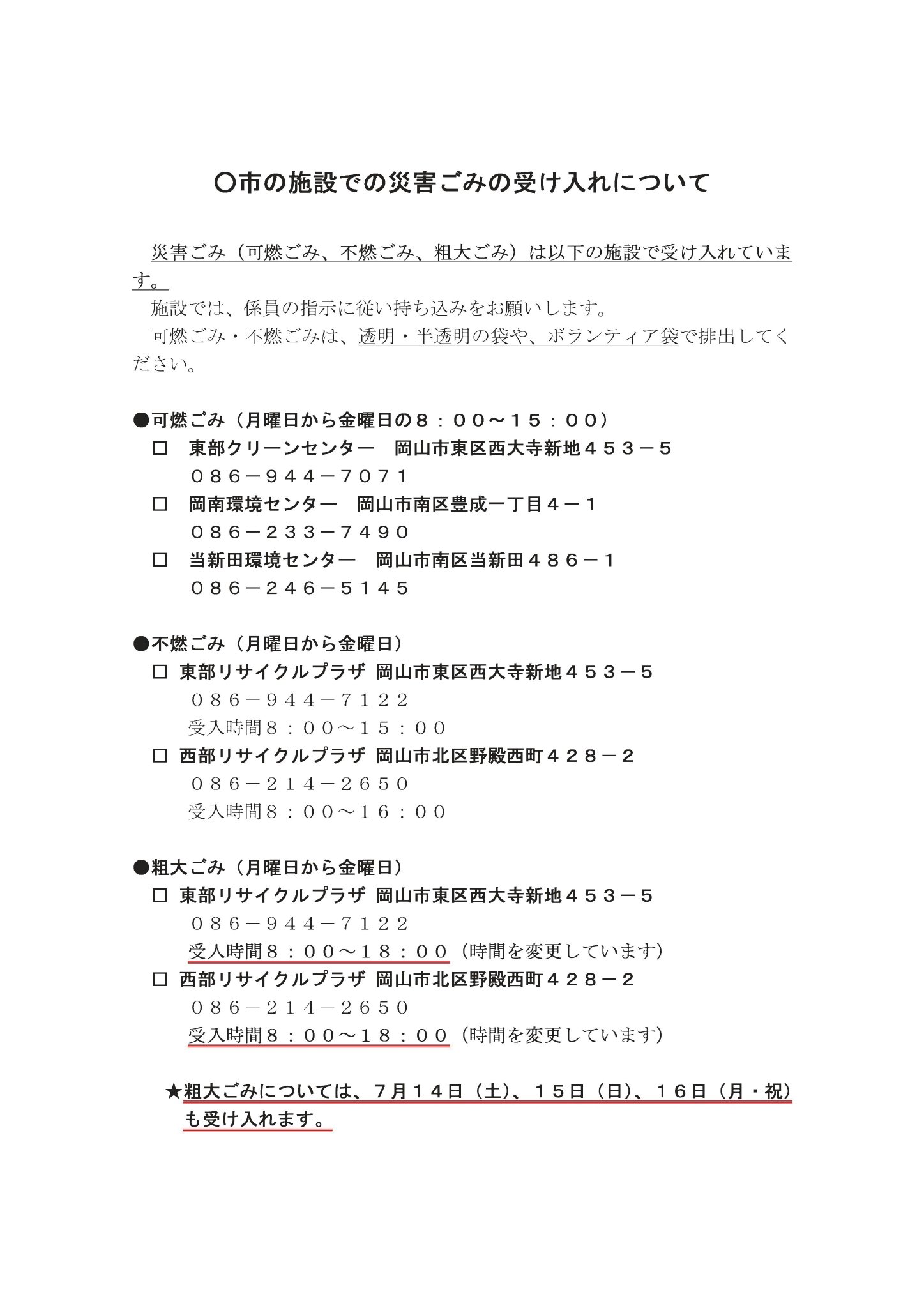 クリーンセンターまにわへのごみの持ち込みについて 久世 勝山地区 真庭市公式ホームページ
