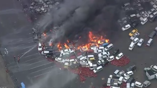 强台风致日本一车展现场被大水侵袭约100辆汽车失火燃烧 失火 西宫市 展示场 新浪军事 新浪网