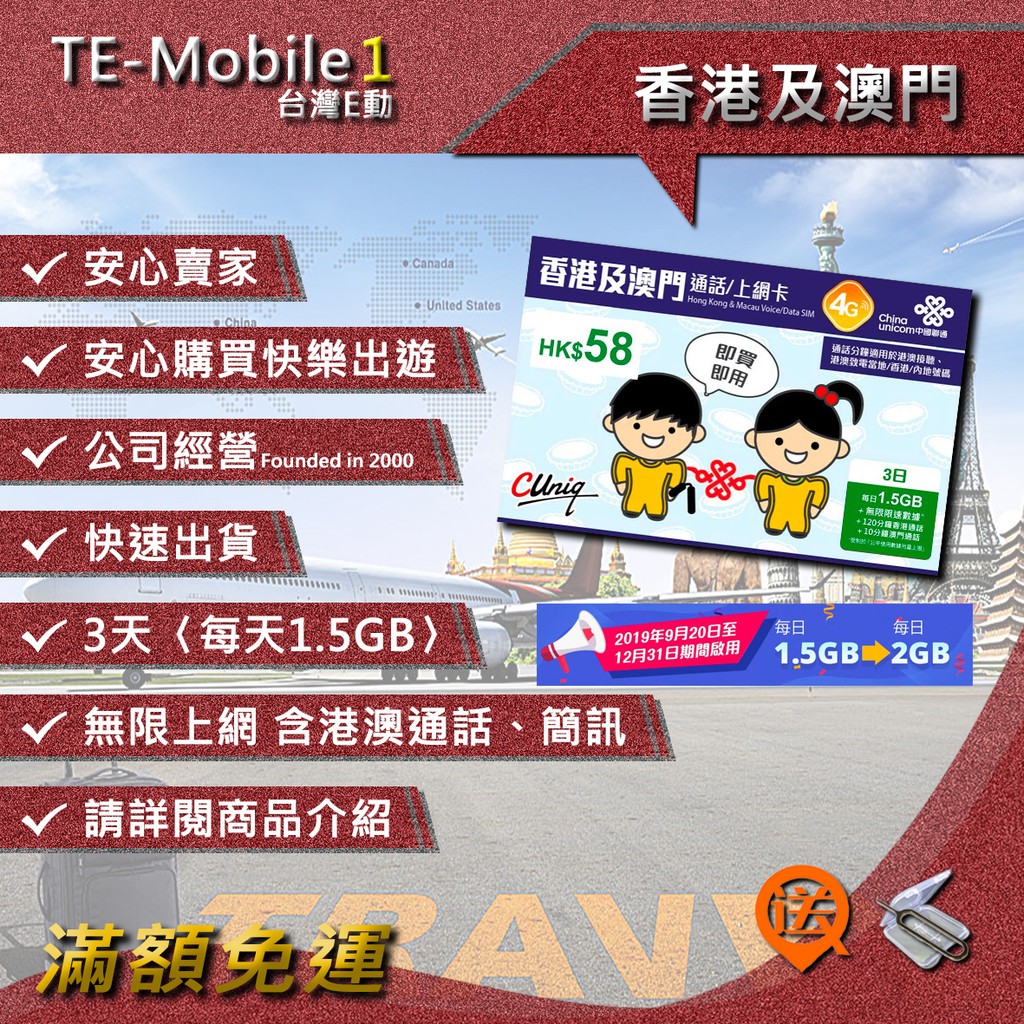 港澳上網卡 香港澳門4日免翻牆sim card 桃園機場取件